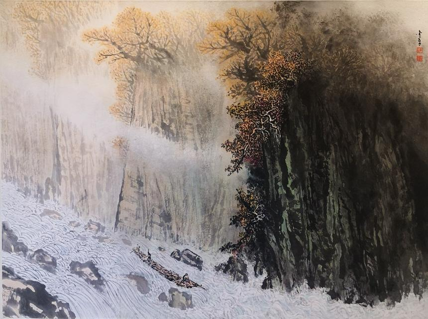(图:秋江放筏图 陈金章 92.5cm×68.5cm纸本设色) 受访者供图