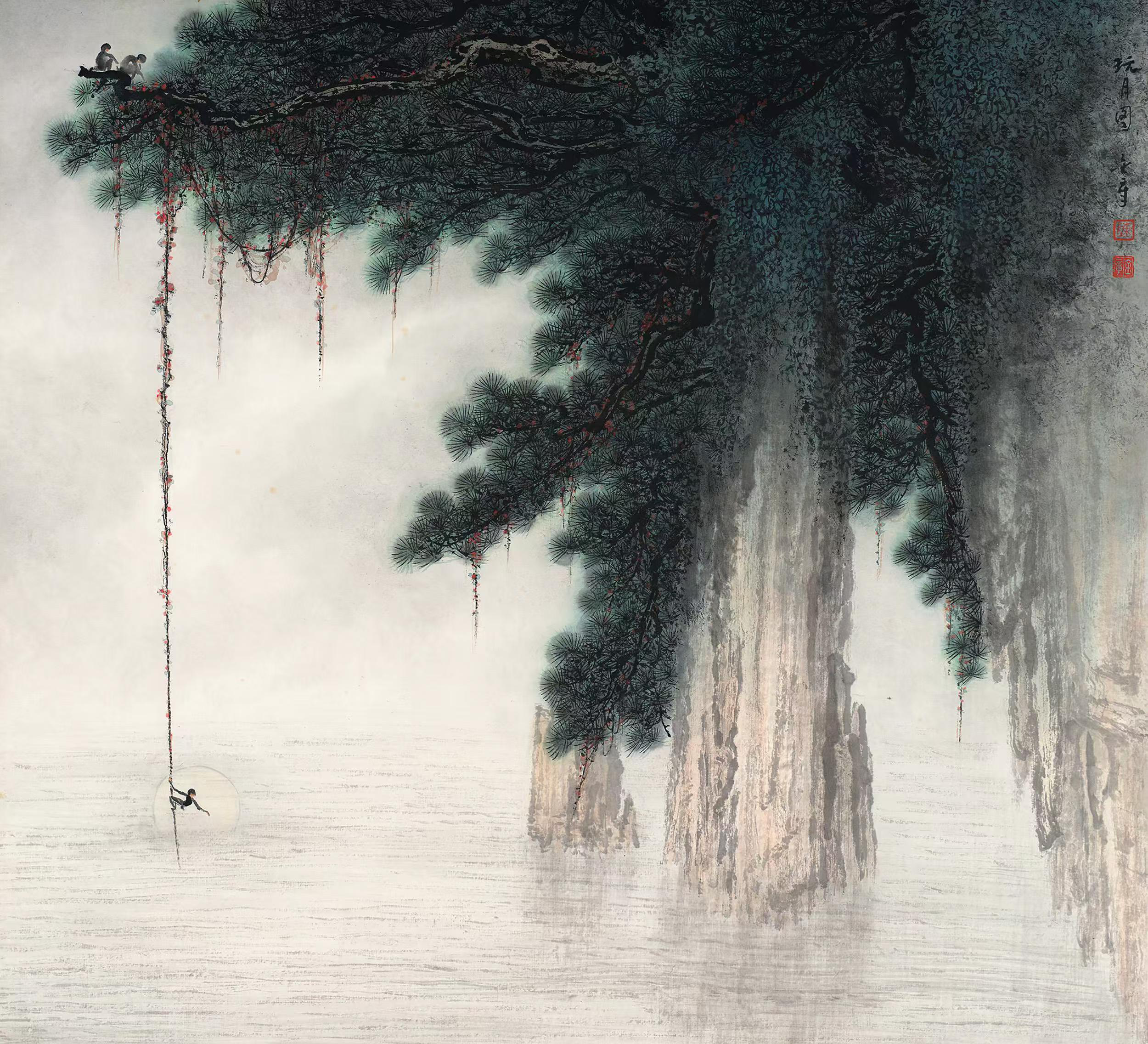 (图:玩月图 陈金章 68cmx68cm 纸本设色 20世纪90年代) 受访者供图