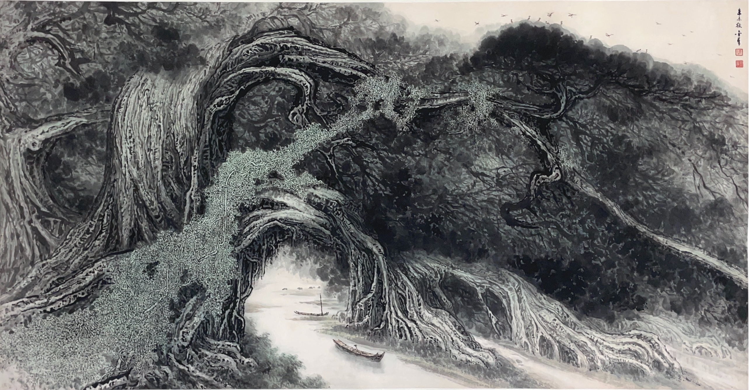 集合多方珍品收藏,精心遴选岭南山水画大家陈金章先生不同时期的书画精品30余件,鲜明展现了艺术家个人风格与坚定的创新精神。
